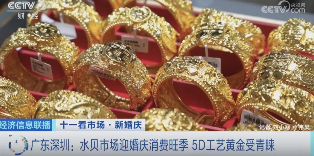 值得注意的是,随着金价持续攀升,5D工艺黄金凭借轻量化、立体感强及时尚设计特点,成为婚庆市场新宠。这类产品既保留了黄金的保值属性,又通过创新工艺降低了单件重量,尤其受到年轻消费者青睐。
