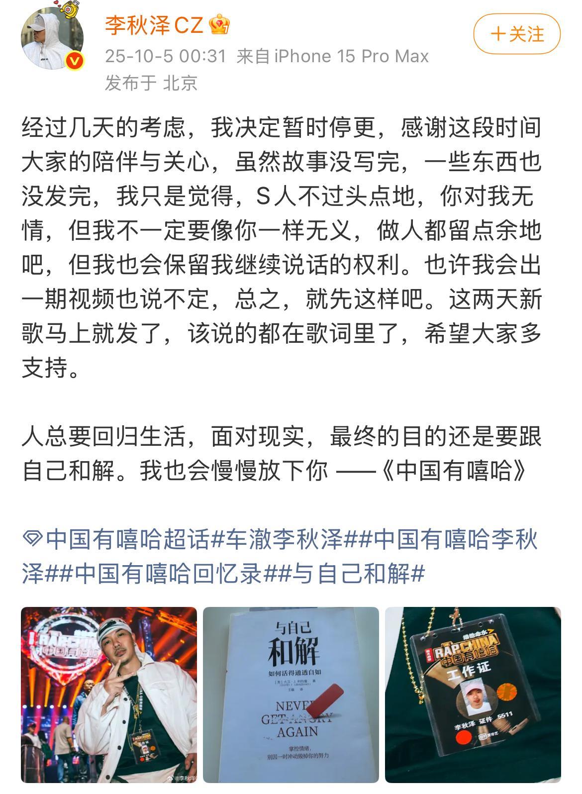 终于,说唱OG李秋泽公开讲述了他停更背后的真实原因。