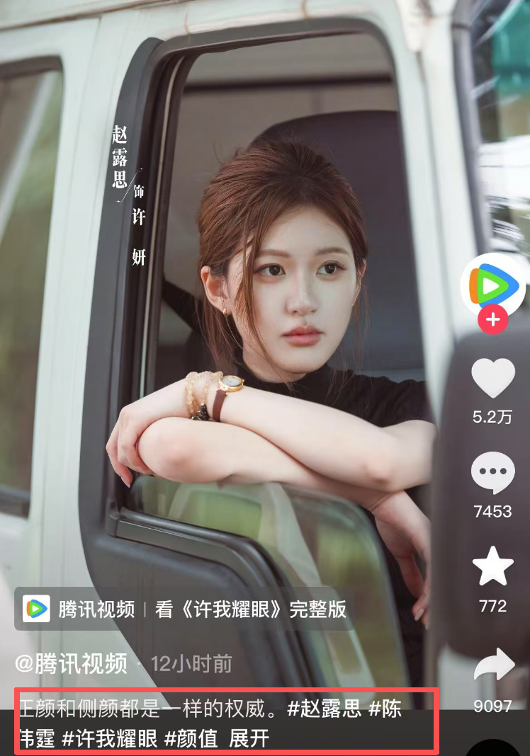 该文案中,鹅厂发布了赵露思在剧中的正侧脸对比照,配文“正颜和侧颜都是一样的权威”。这看似平常的表述却暗藏玄机,对于熟悉娱乐圈的网友而言,其弦外之音不言而喻。