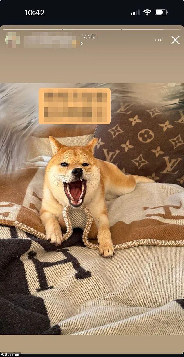 她的柴犬“旺仔”戴着价值990美元的Celine项圈,睡在Louis Vuitton的枕头上,还盖着Hermès的毯子。