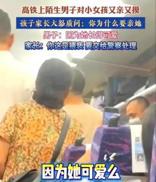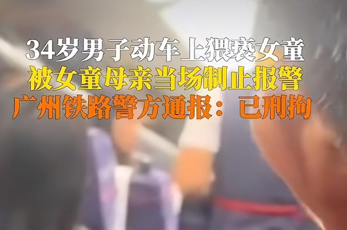 2025年7月3日下午17时30分许,广州至某地的高铁列车上,一名女童的尖叫声打破了车厢的宁静。目击者称,一名30多岁的男子对邻座7岁女童实施搂抱、亲吻等亲密动作,女童因害怕未敢反抗。女童母亲发现后,立即上前质问:‘你为什么亲她的脸?她又不是你的小孩!’