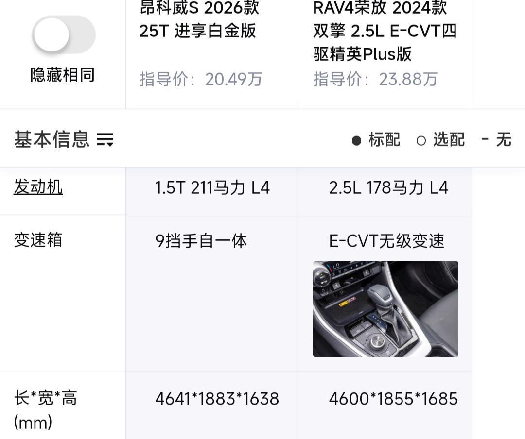 里子更足:坐进车内,RAV4那种以实用为主的塑料感,和昂科威S大量使用软性材质包裹、环抱式座舱的设计一比,精致感差距明显。用买卡罗拉高配的预算,享受到接近豪华品牌的座舱氛围,这是它最大的杀手锏。