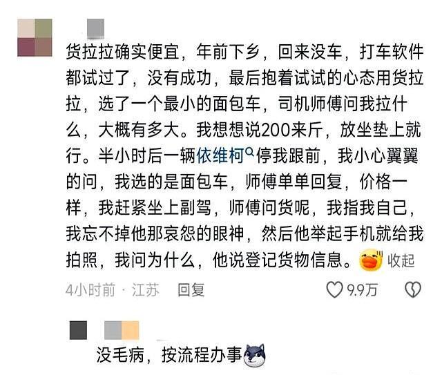 师傅心里估计也在犯嘀咕,反复问了姑娘几遍:“真只拉这些?”姑娘觉得这一幕挺有趣,还拍了个视频发到网上,没想到评论区瞬间“炸锅”,网友们的吐槽一个比一个精彩。