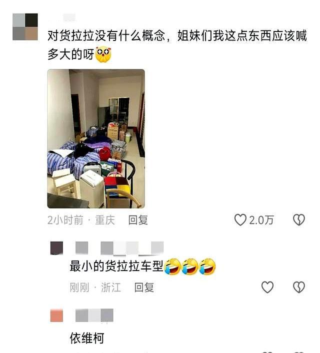 近日,一则女子搬家叫来7.6米货拉拉的趣事在网络上引发热议,评论区网友的吐槽更是让人捧腹大笑,搬家现场秒变欢乐场。