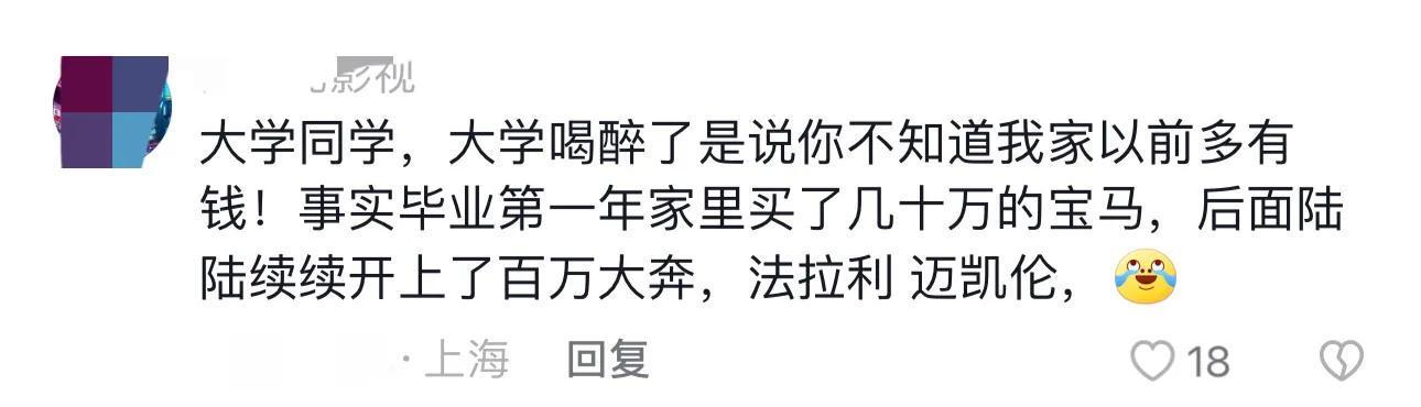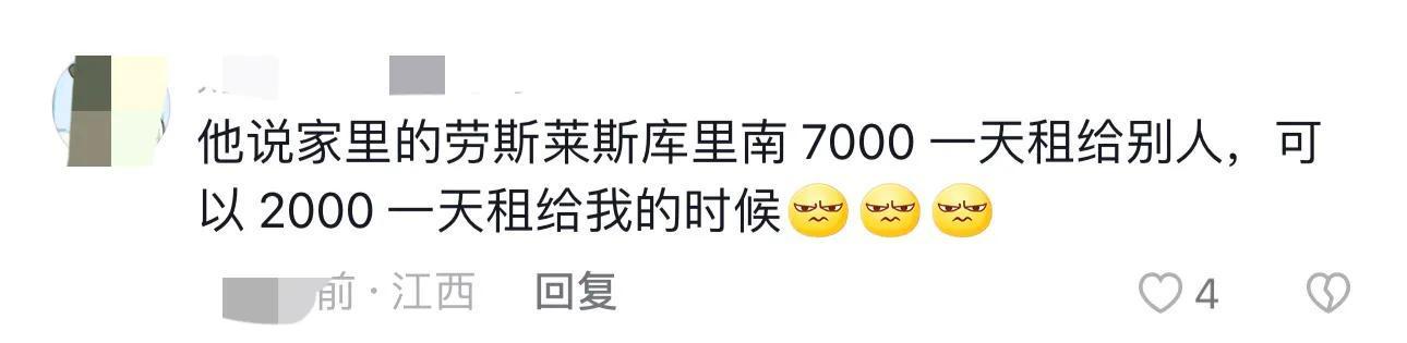 还有网友认识半年,直到昨天晚上他问要不要一起去周杰伦南京站演唱会。网友说上次杭州的票没抢到,挺难抢的。他说不用抢,买票就行。然后给网友一张截图,网友没细看以为他是黄牛。他说你仔细看看内场票,一个人2.5w,两个人4.5w能便宜不少钱。然后网友才了解到,这位“少爷”的升学礼物是一辆库里南。