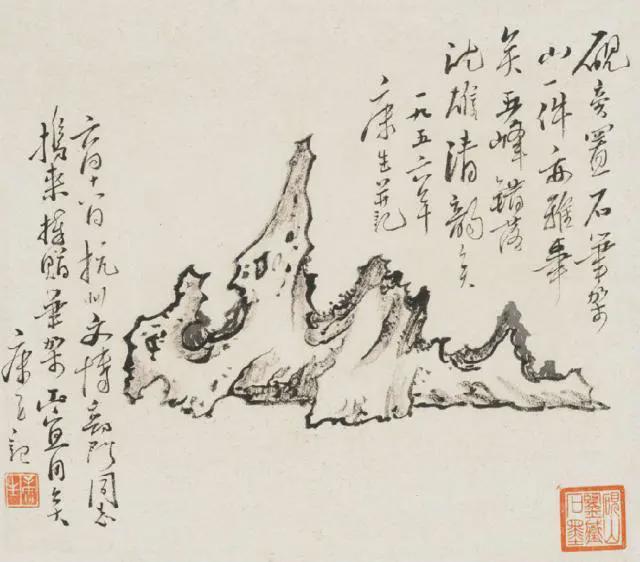 康生的书法技艺尤为出众,他能够运用双手自如地挥毫泼墨,经常展示其左右开弓书写梅花篆字的绝技,技艺之高超令人赞叹。他的作品中常常能看到以“康生左手”落款的杰作,充满了独特的个人风格。