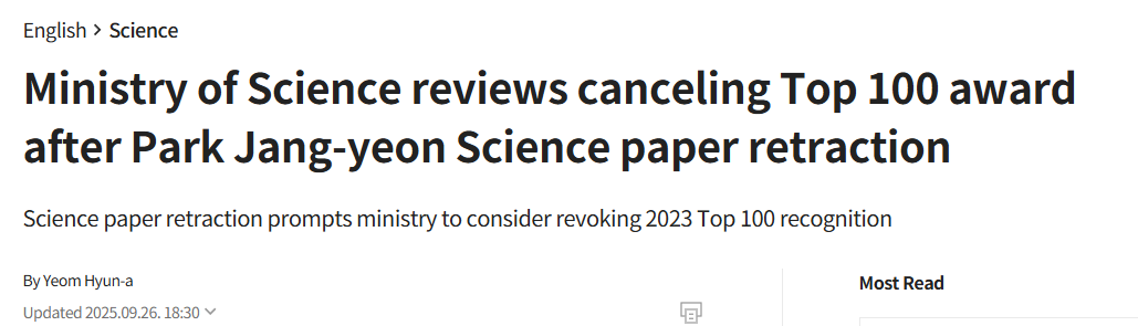 2025年9月26日,韩国科学技术信息通信部(MSIT)发布的一则公告在科研界引发震动:因核心论文被《Science》杂志撤稿,韩国成均馆大学(Sungkyunkwan University)生物医学工程与智能精准医疗融合系朴昌源(Jang-Yeon Park)副教授团队研发的'DIANA'技术所获2023年'国家TOP 100研发成果'奖项正式启动撤销程序。这是该奖项设立20年来首次出现撤销情况,为全球科研诚信体系敲响了警钟。
