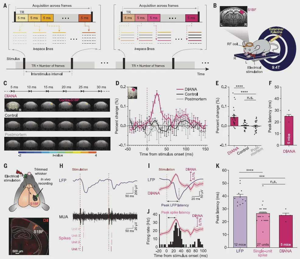 据团队介绍,'DIANA'技术突破传统电极依赖,仅需常规功能磁共振成像(fMRI)设备即可实现毫秒级时间分辨率和细胞层空间分辨率的神经信号捕捉。小鼠实验显示,该技术能以0.005秒间隔追踪神经信号传递至体感皮层,速度达现有技术8倍,被寄予推动阿尔茨海默病、帕金森病等脑疾病研究的厚望。
