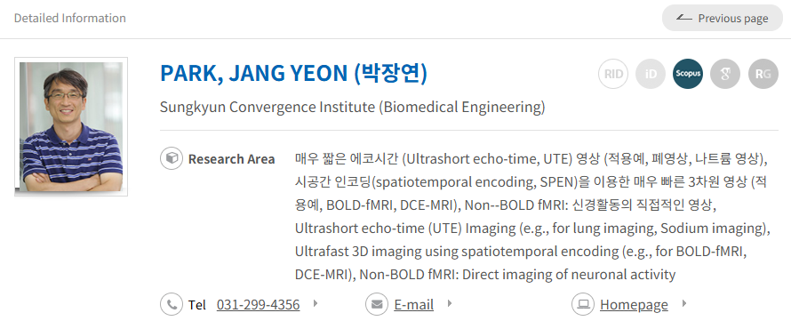 朴昌源(Jang-Yeon Park),现任韩国成均馆大学生物医学工程系副教授、磁共振先进成像研究实验室主任。1995年、1998年先后在韩国首尔大学获得学士、硕士学位;2006年获得美国明尼苏达大学医学物理学博士学位。