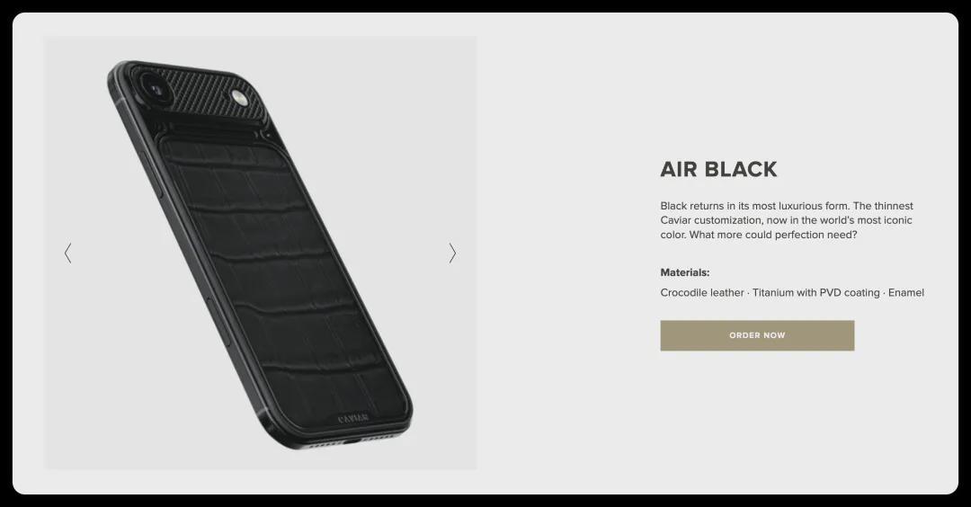 然而,在价格方面,与知名奢侈品品牌Caviar相比,苹果产品似乎也能被贴上“性价比”的标签。Caviar,这家总部位于迪拜的奢侈电子品牌,以其独特的定制服务闻名于世。随着iPhone 17系列的发布,Caviar也在官网首页正式推出了新机的定制版本。