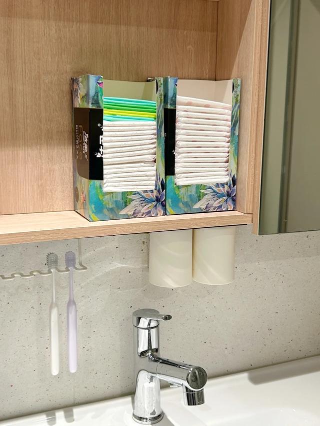 卫生间空间小,卫生巾一直是个让人头疼的收纳问题。