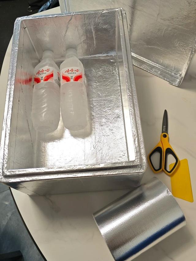 一个本来打算丢掉的水果泡沫箱+贴厨房剩下的铝箔纸,简简单单就做了一个保温箱。