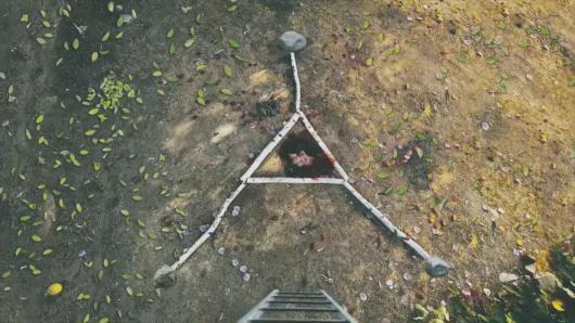 头颅上爬满了水蛭,四周还用树枝和石头组成了那个令警方胆寒的图案——