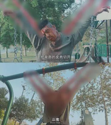 受害者11号后背撕裂,活生生吊在公园的秋千上。