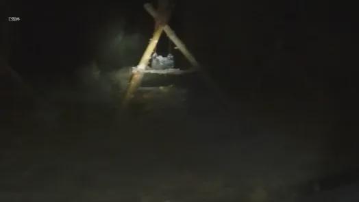 在短暂停留后,凶手带着婴儿进入了森林,搭建好火葬堆。