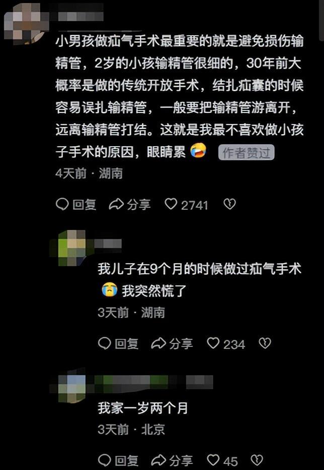 男子在社交媒体分享自己的经历后,引发了广泛共鸣。许多家长表示,此前从未意识到儿童手术可能带来如此长期的生育影响,特别是那些孩子做过疝气手术的家长更是感到担忧。