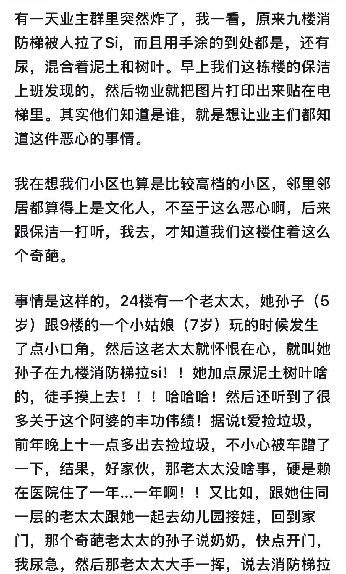 今日话题:你遇到过哪些令人崩溃的奇葩邻居?近日,某网络论坛发起「最让你恶心的邻居」话题讨论,数万网友分享真实经历,其中一位73岁老太太的「变态行为」引发广泛热议。让我们通过真实案例,看看那些让人哭笑不得的邻里纠纷。