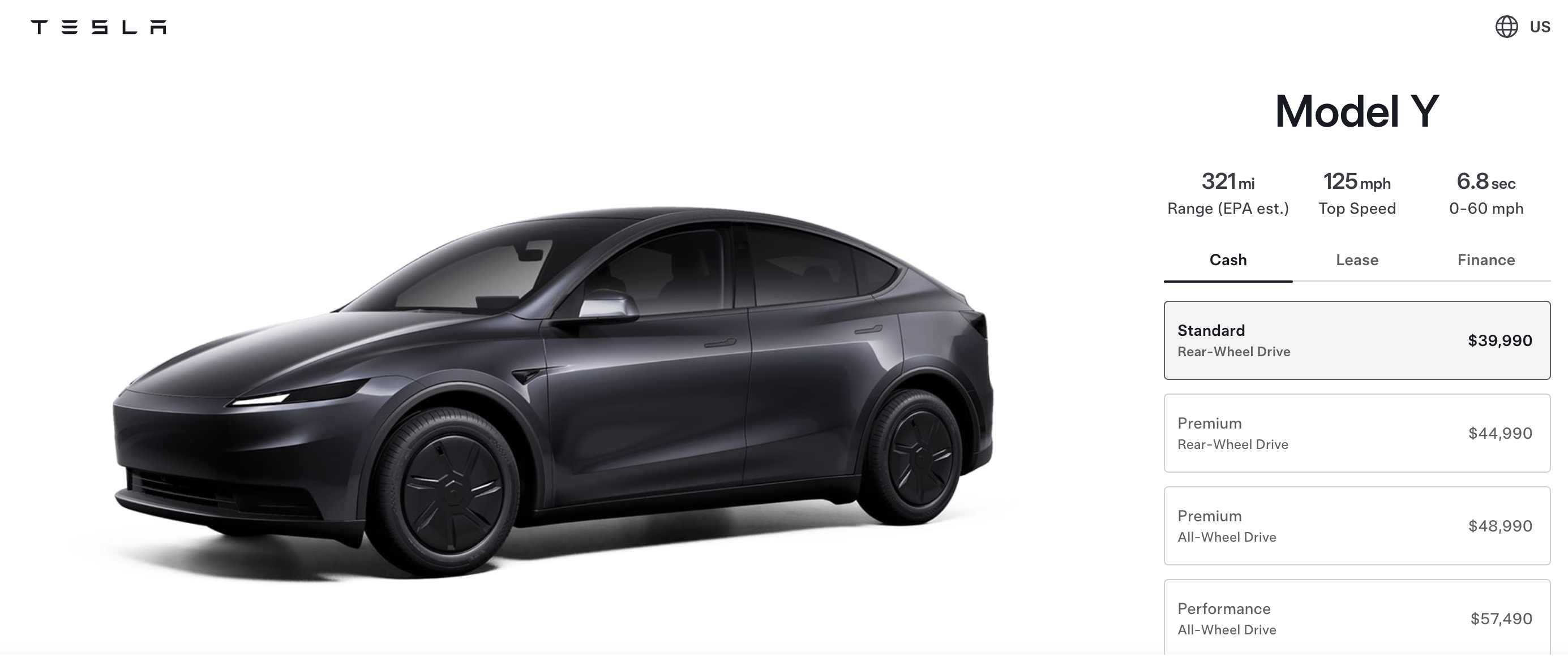 两款标准版车型的续航里程均为321英里(约合516公里),消费者可立即订购,预计于2025年12月起交付。