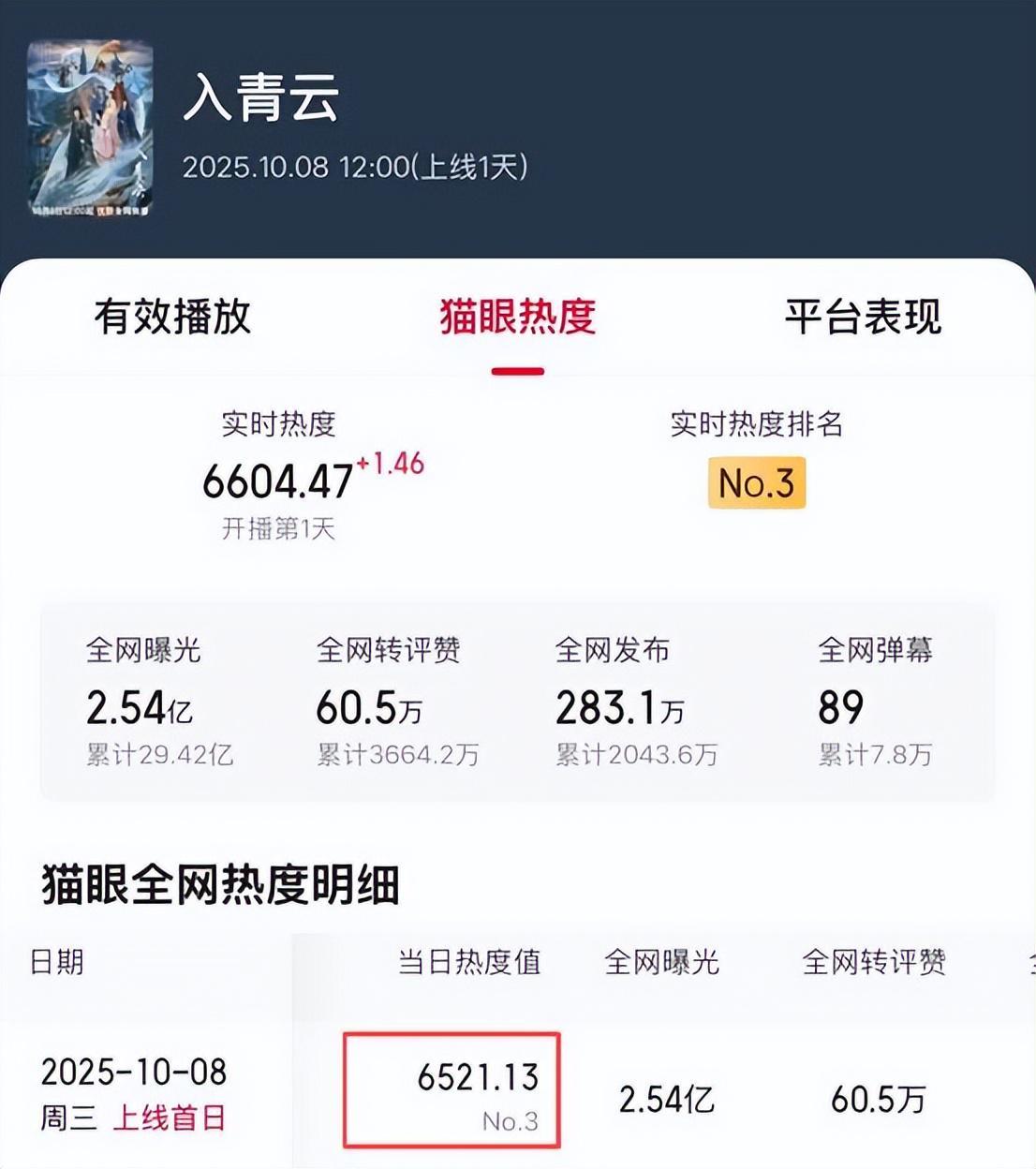 正当观众翘首以盼时,裤的新剧《入青云》抢先登场,古装仙侠大剧仅播3集,热度便突破6500,观众好评如潮,口碑彻底“炸裂”!