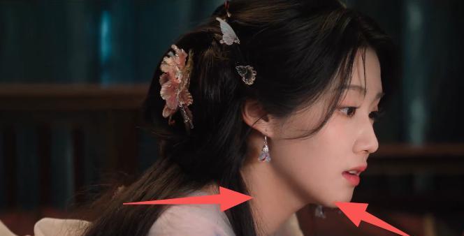 明明是男主对着她的耳朵说话,感觉都要暧昧拉满了,偏偏她厚厚的肉抢镜了,氛围感一下没了。