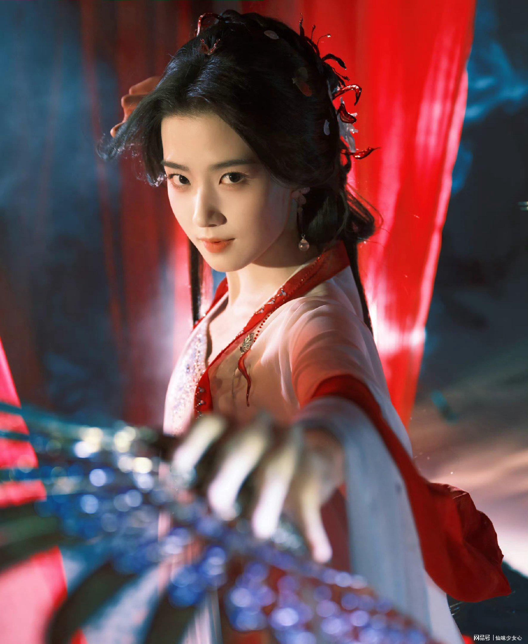 侯明昊的古装黑袍金纹造型被赞“仙侠天选”,微表情精准拿捏纨绔公子与腹黑谋略家的双面性,红衣战戏打斗力量感十足;卢昱晓则一人分饰冷酷战神与娇媚舞姬,无缝切换角色,打戏融合京剧武生身段,银甲出枪姿势气场全开。两人互动自然,CP感莫名好嗑,被观众封为“仙侠版史密斯夫妇”。