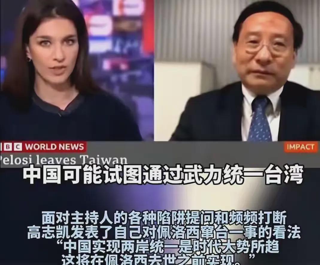 高志凯在专访中,面对BBC记者的诘难与抢话,展现出了非凡的智慧与勇气。他直言:“中国的统一会在佩洛西死前实现。”