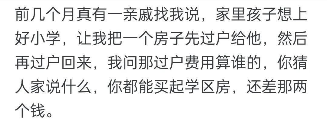 还有网友分享说,自己的隔壁邻居发小,发小有一儿一女,女儿小,有个姐姐40多了还单身,在省会三甲医院上班。这个姐姐竟然想掏钱让她弟弟的女儿去省会读书,结果她弟弟还不愿意!这种“好意被拒”的情况,也是让人哭笑不得。