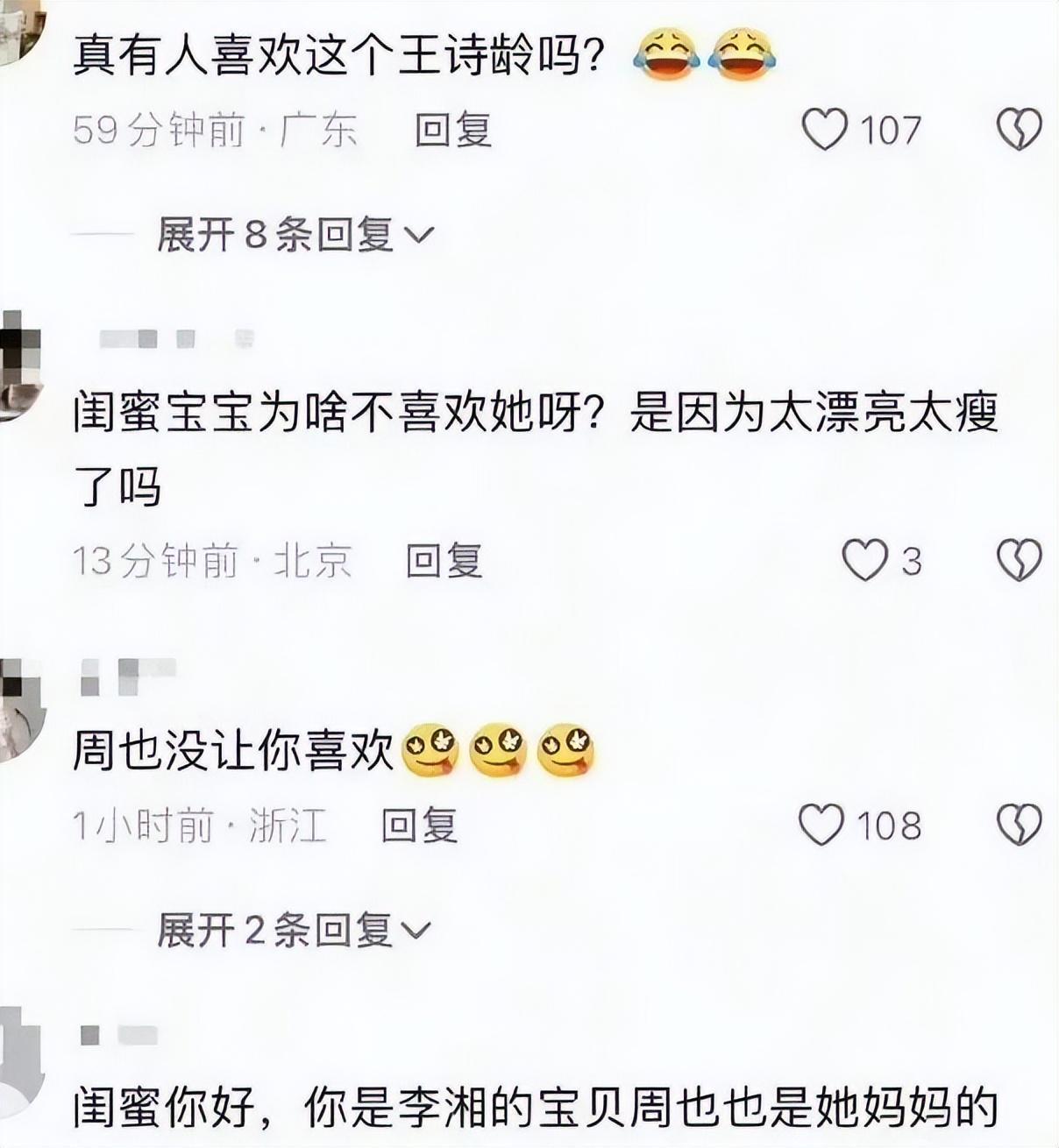 3. 数日内,王诗龄陷入口诛笔伐,评论区被迫关闭;李湘的形象遭遇质疑,过往“富养”标签被撕开裂痕;而周也则无辜卷入是非,谣言四起。
