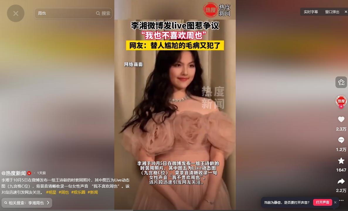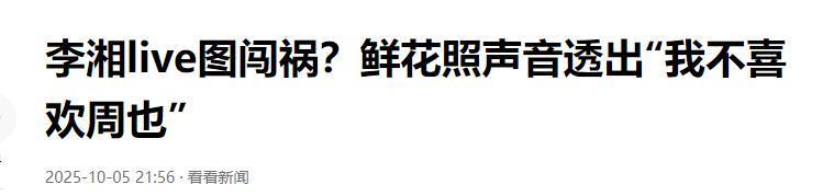 66. 参考文献:1.《李湘微博发live图惹争议“我也不喜欢周也”网友:替人尴尬的毛病又犯了》热度新闻2025-10-06 2.《李湘live图闯祸?鲜花照声音透出“我不喜欢周也”》看看新闻 2025-10-5