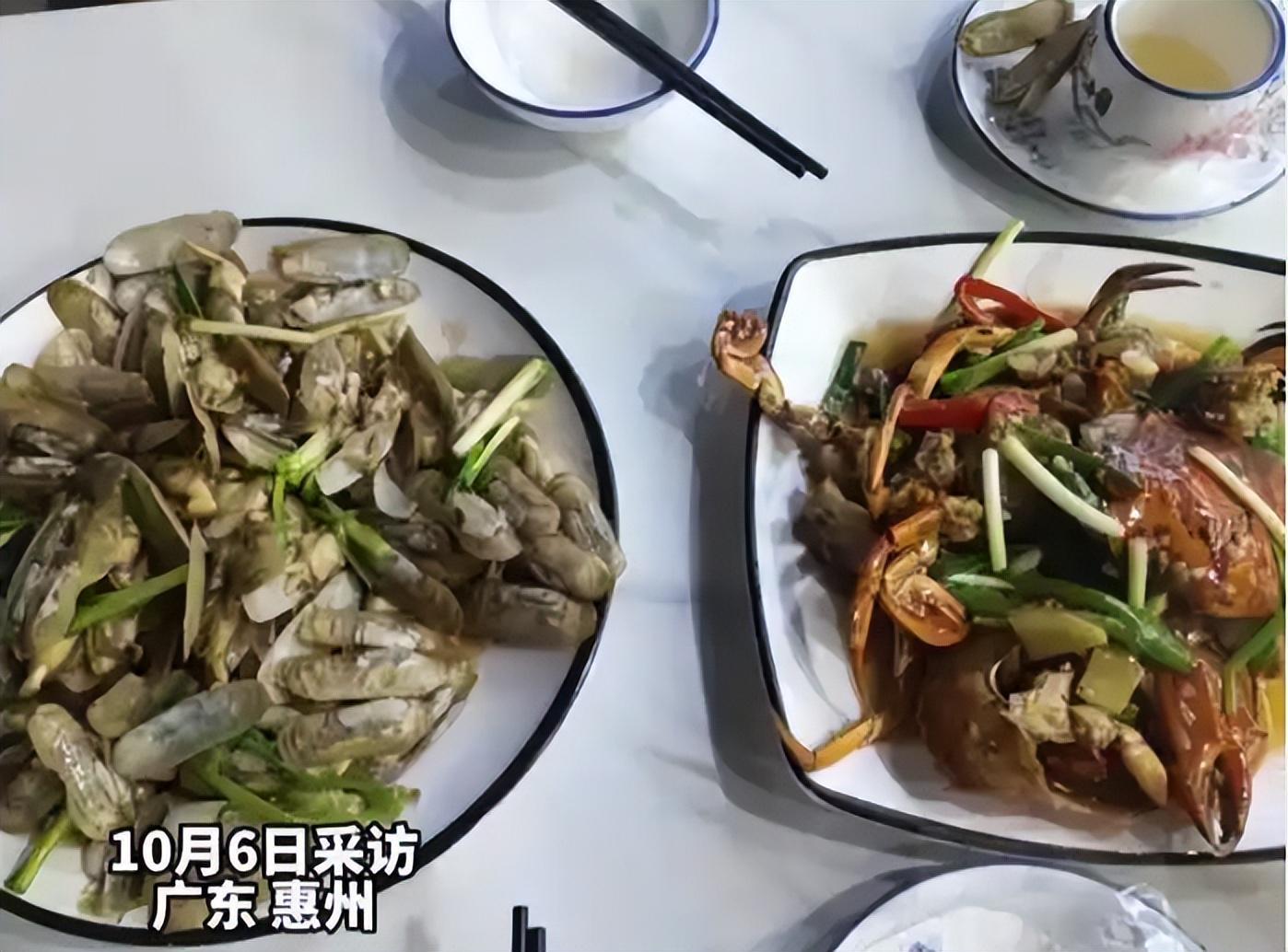 就这样,没经验的杨先生没再多追问,随后上了两盘菜:一盘螃蟹,一盘炒蛏子。从视频中可以看到,这两盘菜的菜量似乎都不大,但让杨先生没想到的是,账单上的数字让他瞬间懵了。