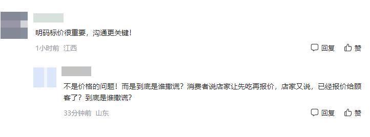 也有网友表示,既然店家都明码标价了,那么在下次吃饭前都应该问问清楚,也有人在质疑究竟是谁在说谎。但就在网友还在为“谁在说谎”争论不休,甚至有人开始期待监控视频或官方调查结果时,事件突然迎来了转折。