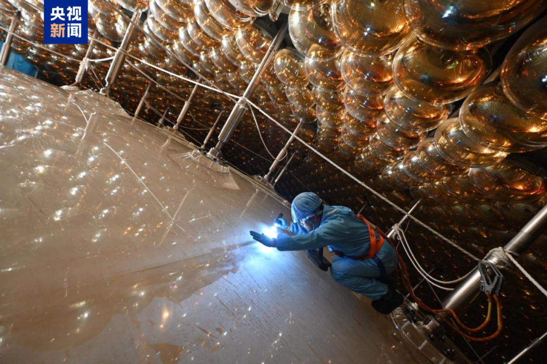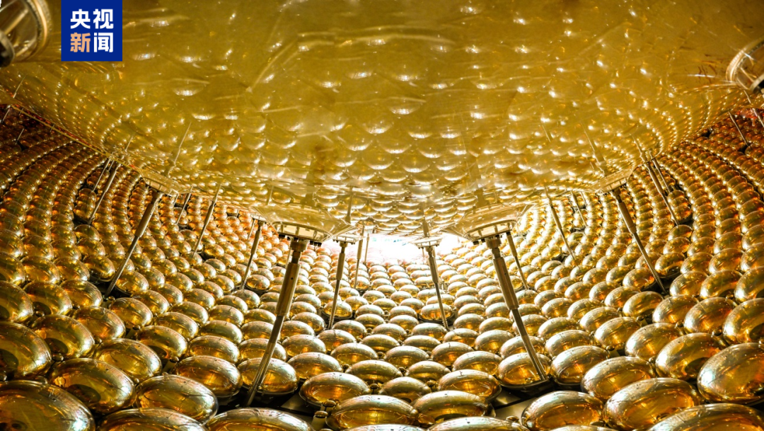 更震撼的是,围绕在外的探测器——2万只20英寸和2.5万只3英寸的光电倍增管,像星辰一样密布在四周。它们被科学家称作“黄金瞳”,每一只都极度敏锐,只要有一个中微子在液体中留下哪怕一丝痕迹,这些“眼睛”就能瞬间捕捉到,并把几乎不可见的闪光放大上千万倍。
