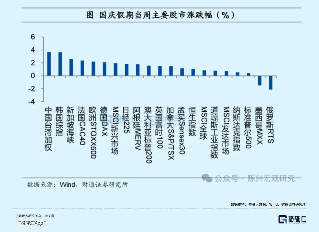 机构也对10月行情也普遍给予乐观预期,认为四季度预计A股延续“慢牛”态势,在宽幅震荡中逐级抬升。但历史不会一昧复现,而是要综合当下经济基本面、流动性以及市场情绪来调整,譬如去年9·24级别的行情并没有在今年港股上演,在AI芯片、政治选举一系列复杂题材催化中日韩台等市场表现更加出色,而港股在10月2日当天大涨之后迅速回调。