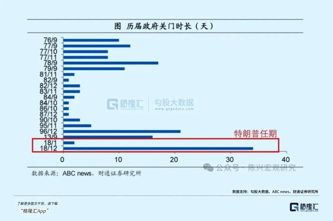 假期间,海外多则关键事件影响着资产价格走势和全球流动性。其中,为黄金不断冲高起到助推作用的,来自美国政府关门所带来的连带效应。原定3日发布的月度就业报告延期;10月中旬CPI通胀数据披露也可能“泡汤”。劳工统计局全面“休眠”,采集工作也处于停摆状态。因此,关键数据缺失导致经济解读如同雾里看花,于是强化了降息预期,停摆时间越长反而对金价追涨形成了利好。从历史上看,1976年以来美国政府停摆平均持续8天,最长是35天,在特朗普上届任期发生。也正是那次停摆期,金价周涨幅达到2.5%。