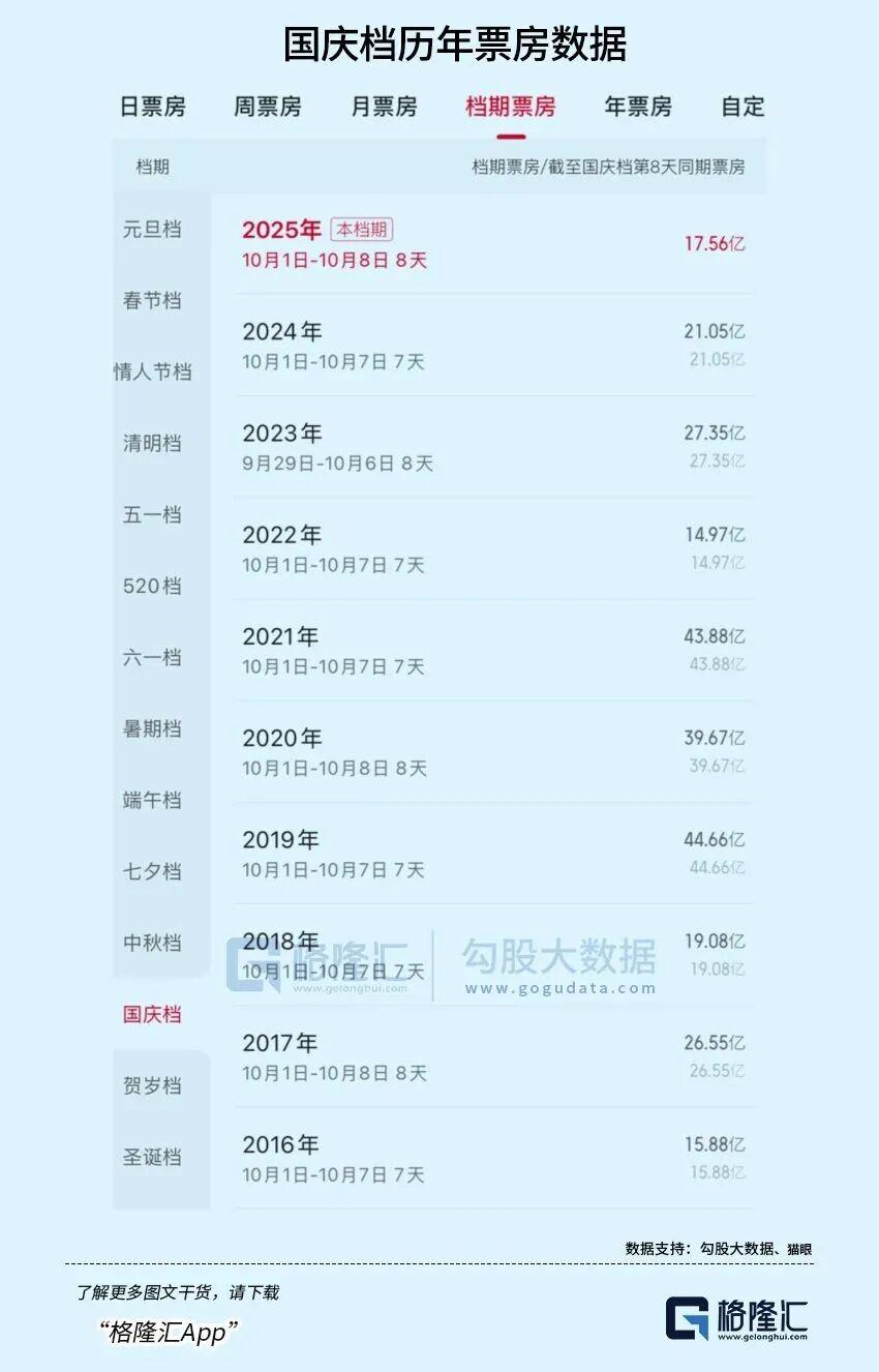 电影方面,据网络平台数据,截至10月7日18时40分,2025年国庆档电影总票房(含预售)破17亿元,前三名为《志愿军:浴血和平》、《731》、《刺杀小说家2》,仍低于2024年7天假期的21.05亿。