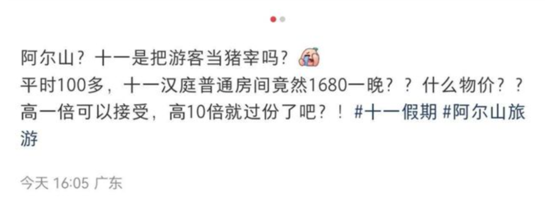 “这波涨价真是自己砸自己招牌,现在年轻人可不好忽悠,帐篷又潮又省钱,谁还当冤大头啊!”一位网友在社交平台上的评论,道出了今年十一长假住宿市场的巨大变化。