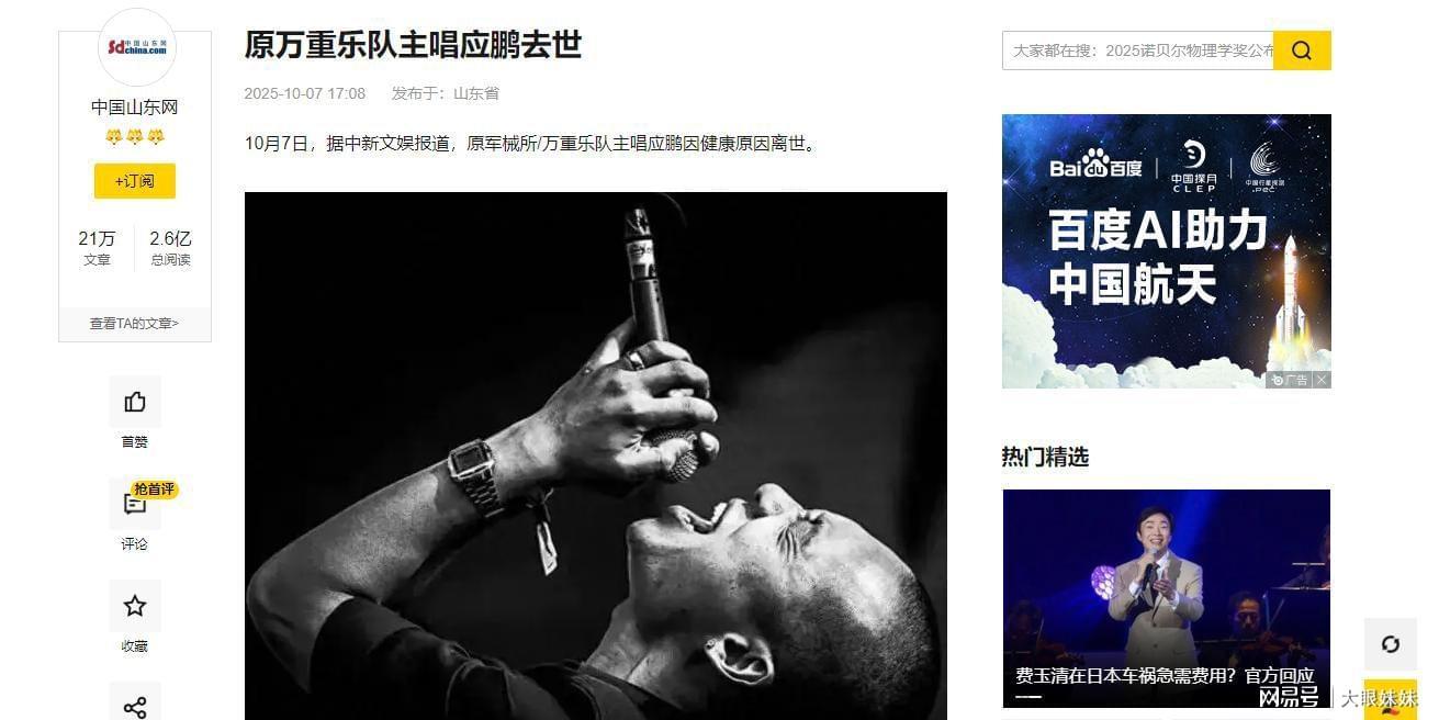 今年10月7日万重乐队的前主唱应鹏在也传出了去世的消息。
