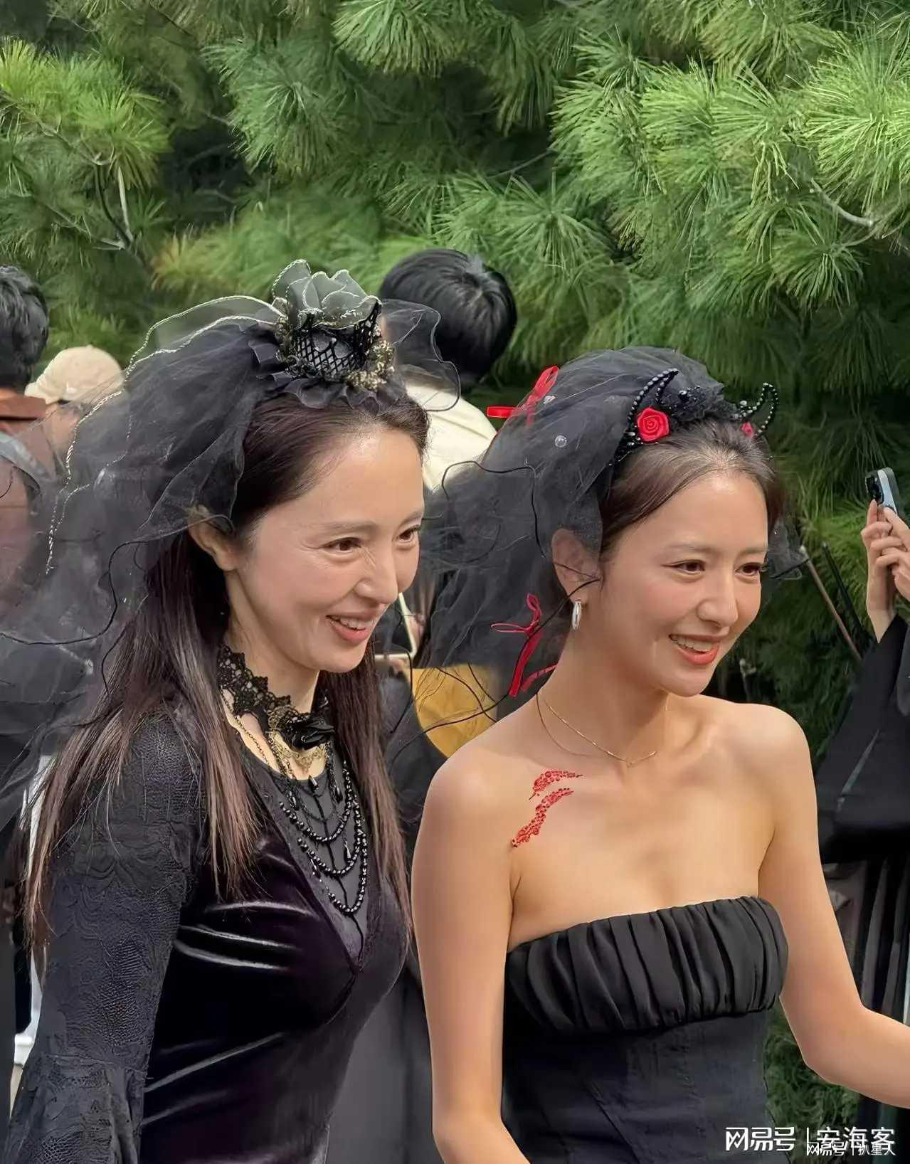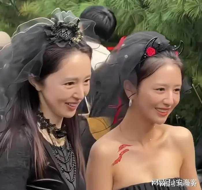 反观董璇,和女儿的“浮夸”打扮相呼应,穿了件黑色网纱长裙,还戴了黑色头纱,乍一看像“古老女巫”。或许是年纪增长,她的皮肤明显松弛,面无表情时嘴角下垂,透着一股凶相;笑起来更显苍老,眼角、嘴角甚至鼻子周围都布满褶子。网友调侃“说她70多岁都有人信”。更让人意外的是,正面看她的脸又透着“馒化肿胀感”,苹果肌和额头部位像是填了“科技与狠活”,一按一个坑,有现场网友竟没认出她来。