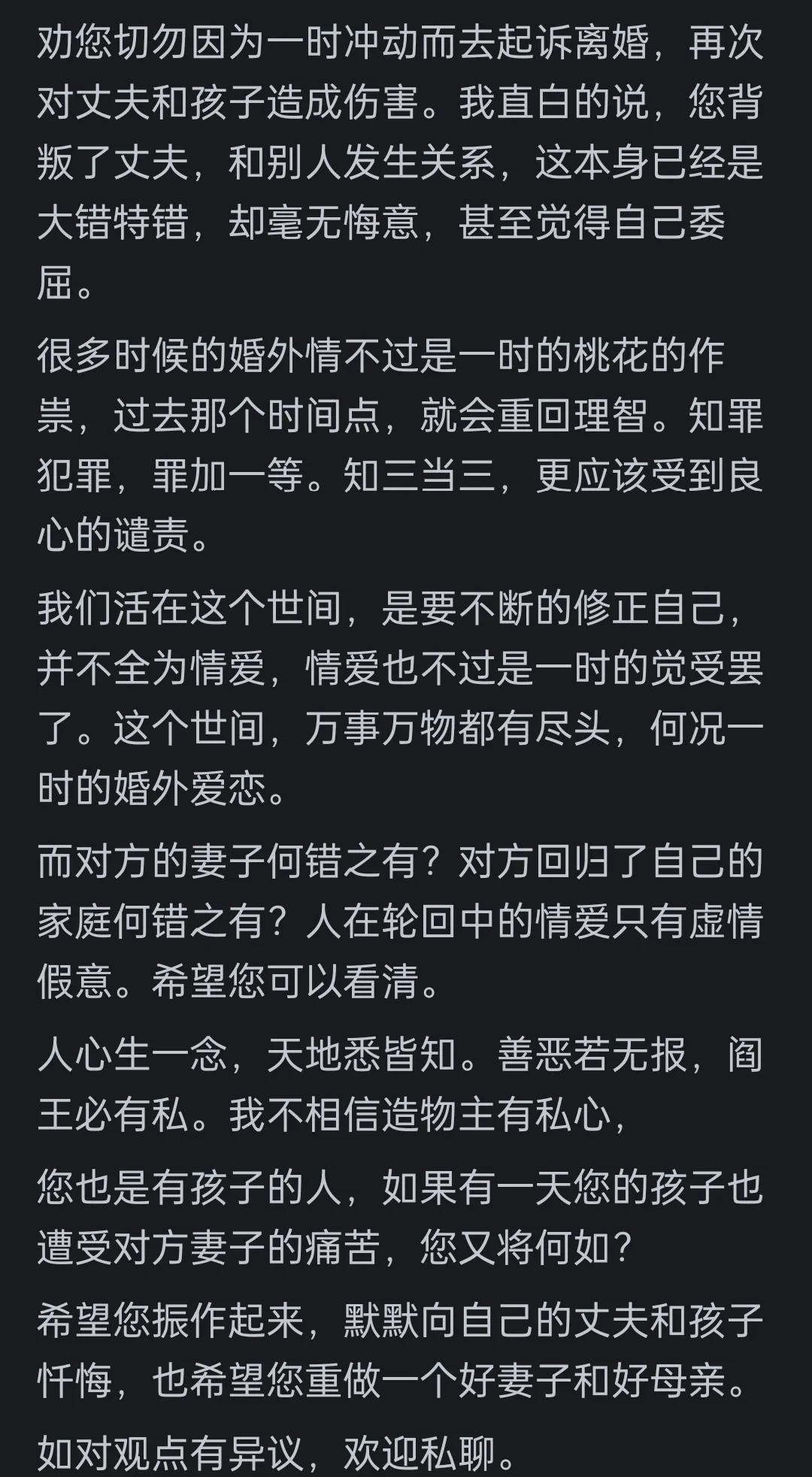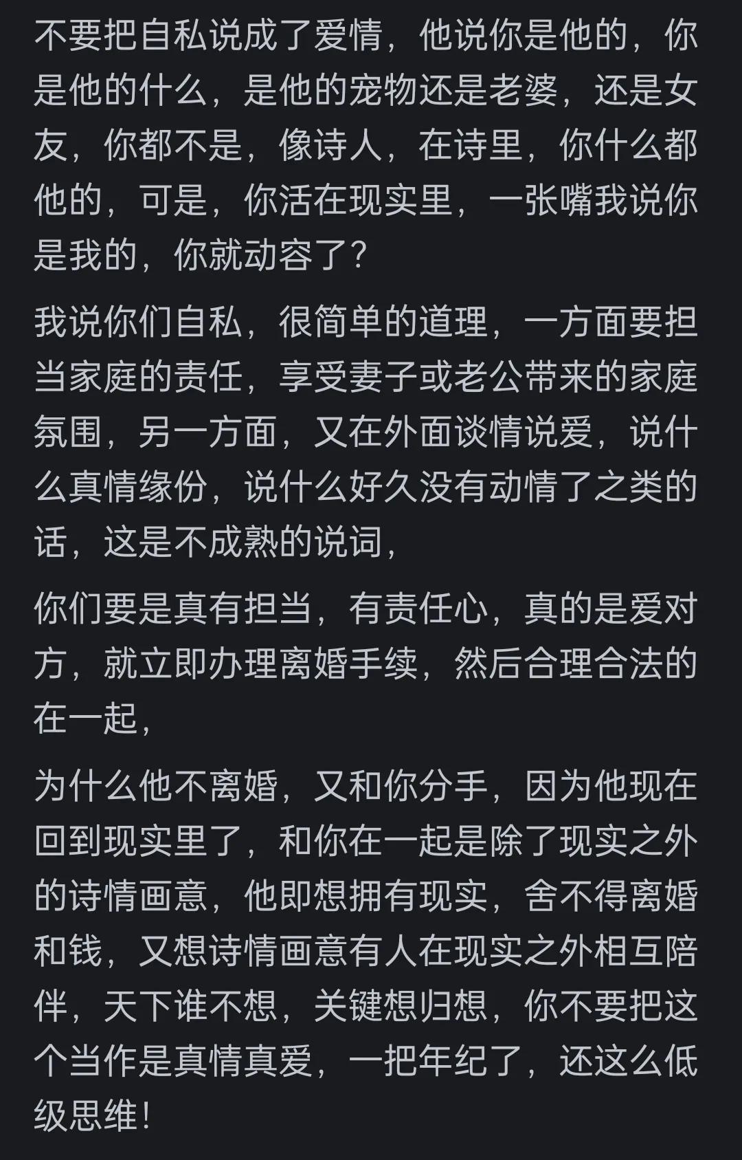 关于第三者的争议,有网友提出不同视角:随着年龄增长,对婚外情的理解更趋包容。虽然第三者在道德层面处于劣势,但有些原配在处理婚姻问题时也存在责任。现实的压力让许多人寻求情感出口,这或许是人性的无奈。