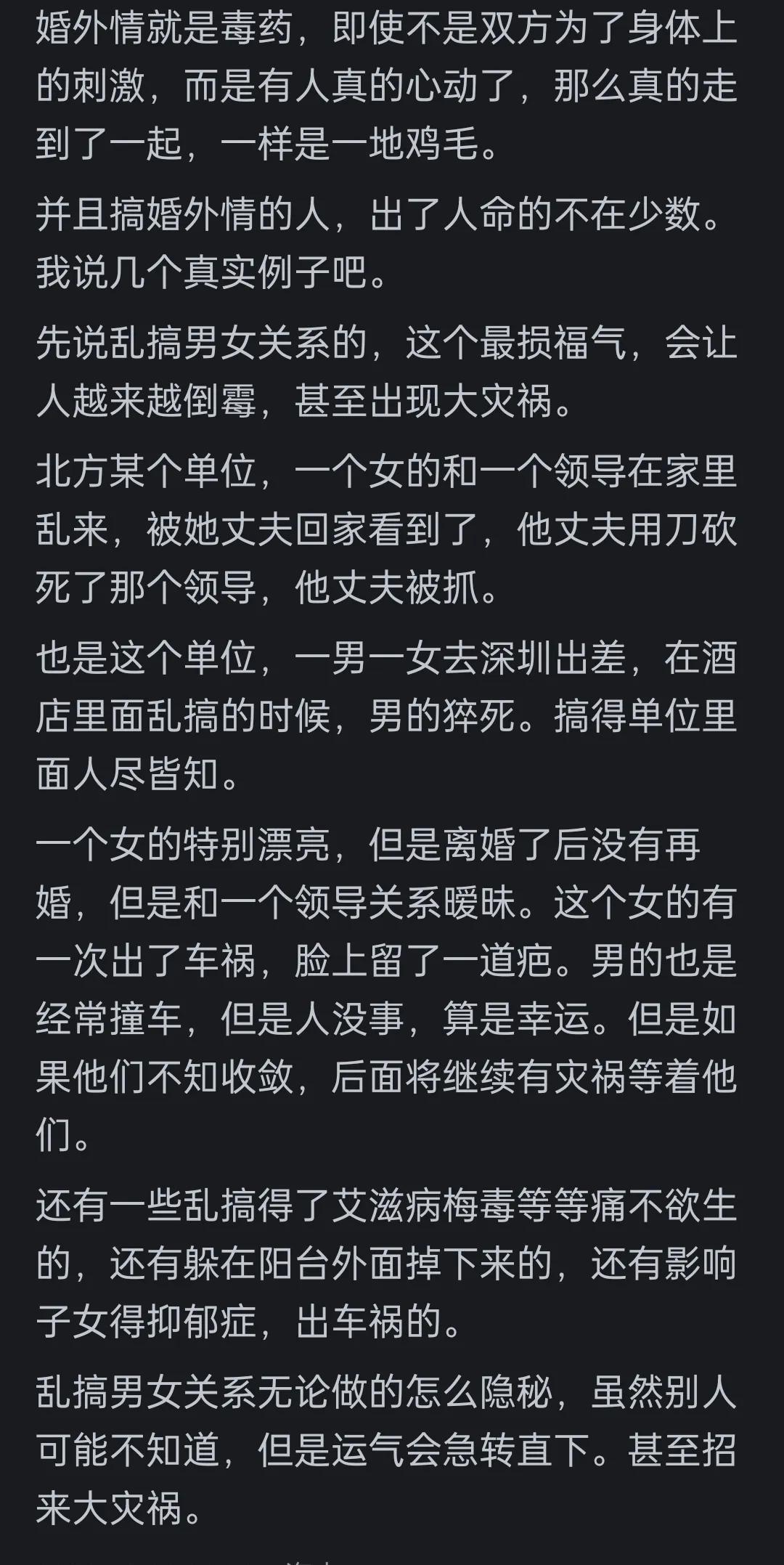 今日话题:你见过的婚外情是什么模样?婚姻中的情感纠葛往往比想象中更复杂,小编整理了多位网友的真实经历,带你看清亲密关系背后的真实困境。