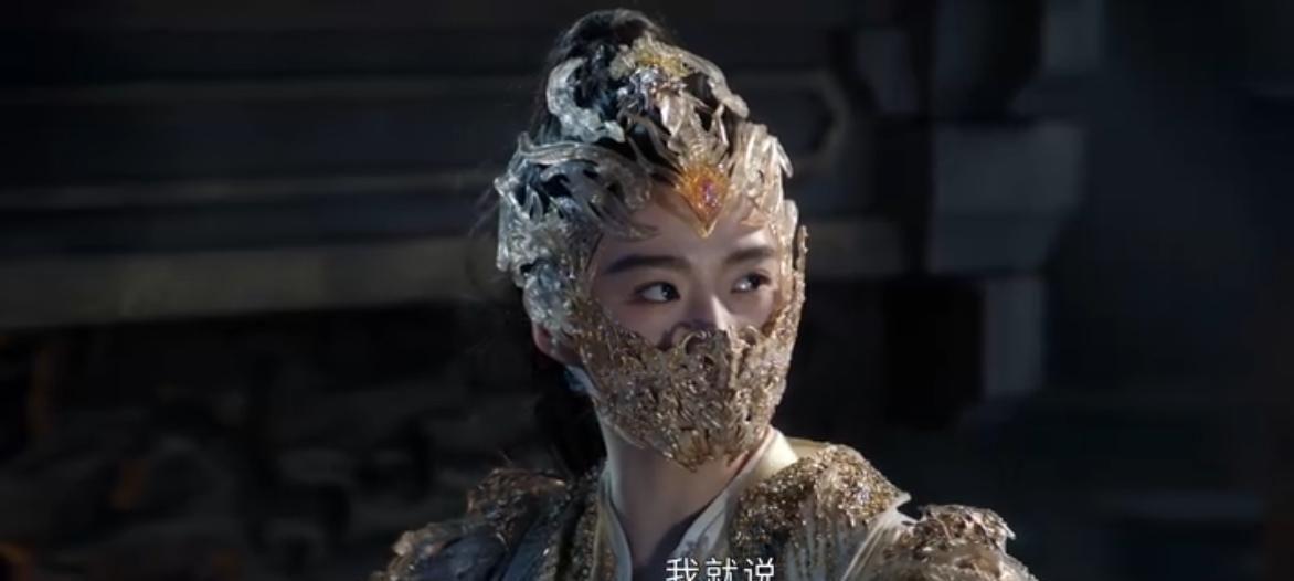 她身穿金色盔甲,戴着金色面罩,眼神充满杀气,身形魁梧,雌雄莫辨,男扮女装多年,骗过了许多人。