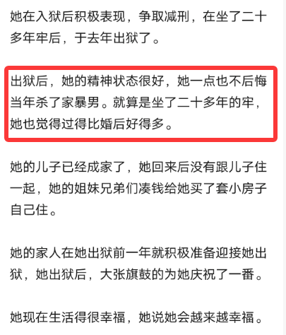 让前婆婆,理解了她杀死丈夫的苦衷和立场,愿意和她重新一起生活。