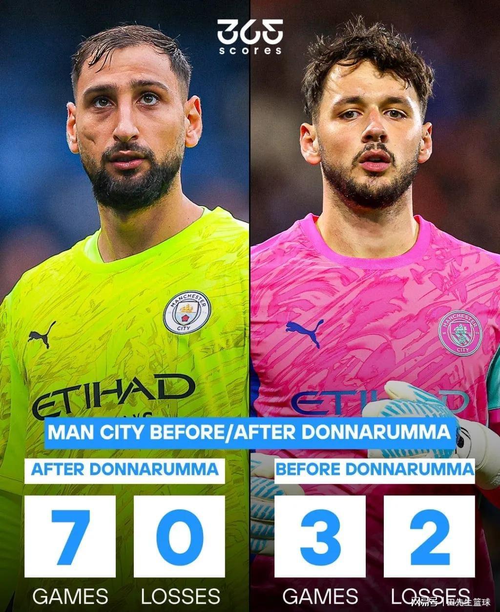 当多纳鲁马身披曼城战袍站上伊蒂哈德球场的门线时,或许连曼城管理层都未曾想到,这位3000万欧元引进的意大利国门,会成为球队重返巅峰的关键拼图。自加盟以来,多纳鲁马在7场英超联赛中交出3场零封、仅丢4球的惊艳数据,更以5胜2平的不败战绩,帮助曼城从赛季初的颓势中强势复苏。