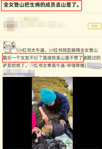 女生参加某红书“全女”登山队遇险,被姐妹丢下等死现场视频被扒太可怕!