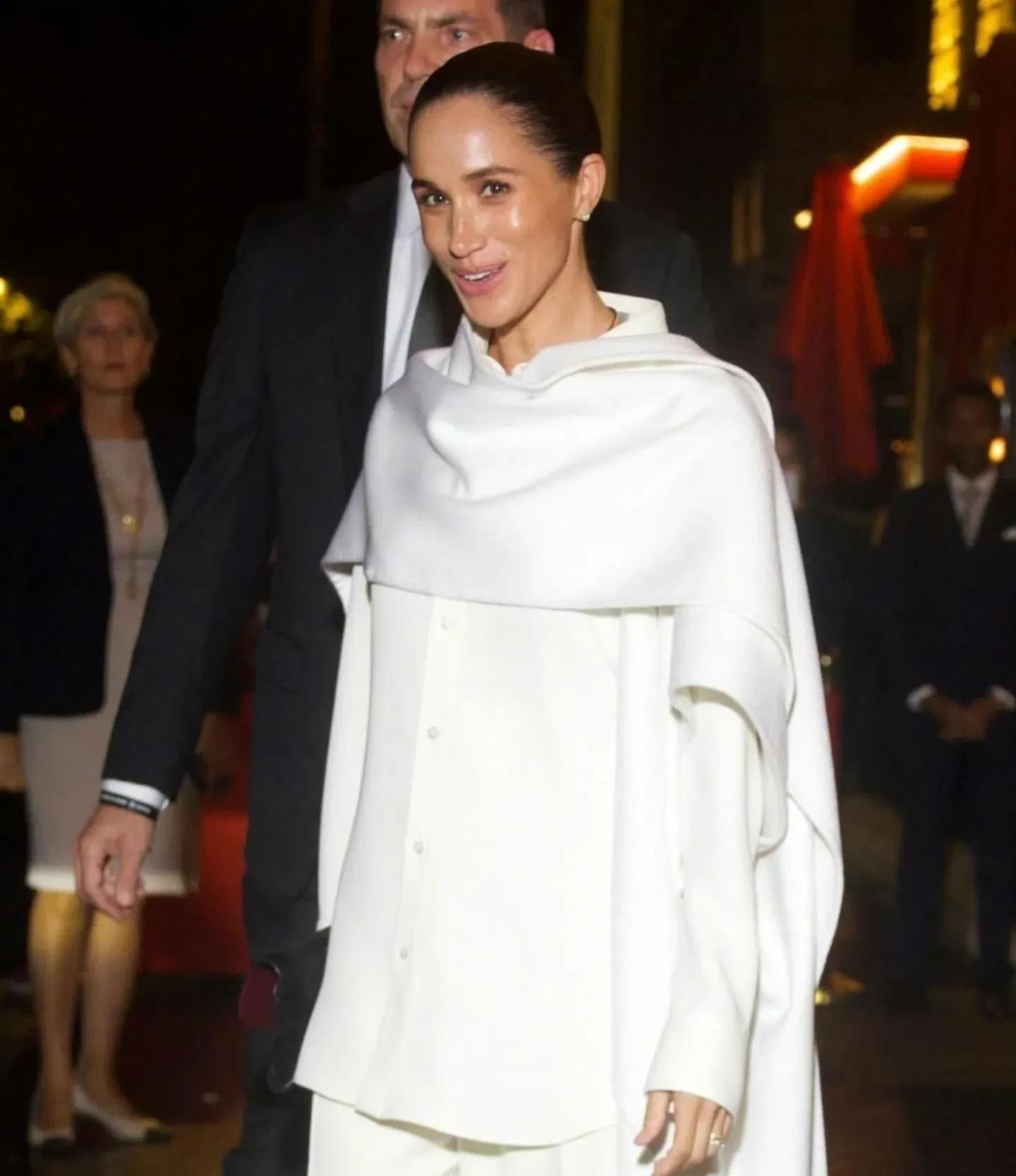 相比之下,梅根在巴黎时装周的表现则显得有些逊色。近日,她以一身白色穿搭亮相,但王室粉丝却评价她像裹着床单出门,时尚品味备受质疑。此外,梅根的面容变化也引发了广泛关注,不少人认为她失去了以前的亲和力。