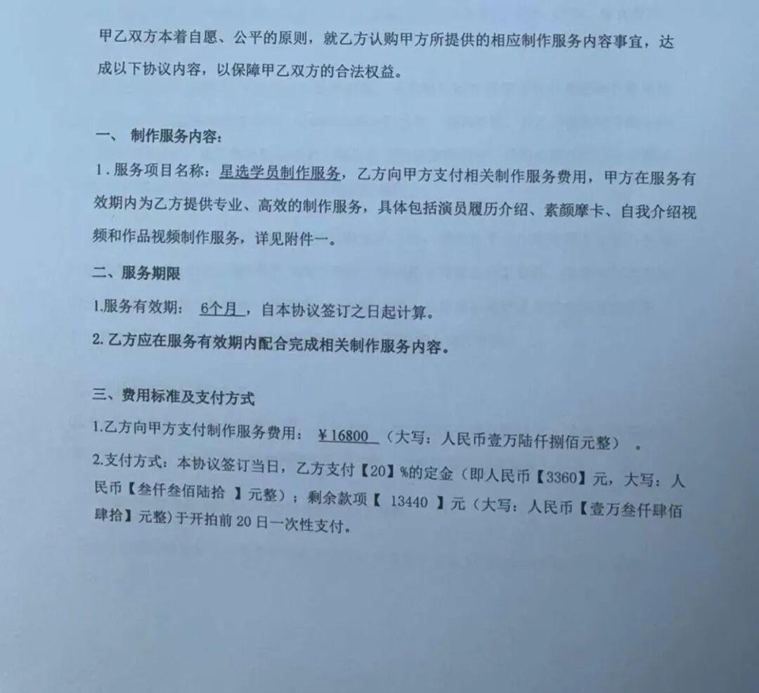 回过头来重新审读合同,她才意识到条款中只列明了培训课时、模卡拍摄等基础服务,而“提供演出机会”这一最关键的口头承诺,从未出现在纸面上。合同中甚至还列有“包装费不予退还”等明显不公的条款。