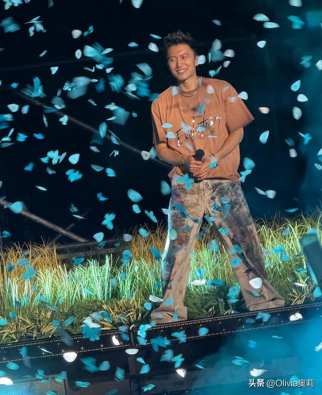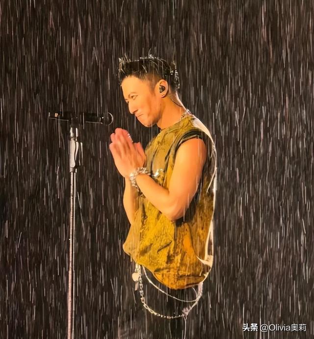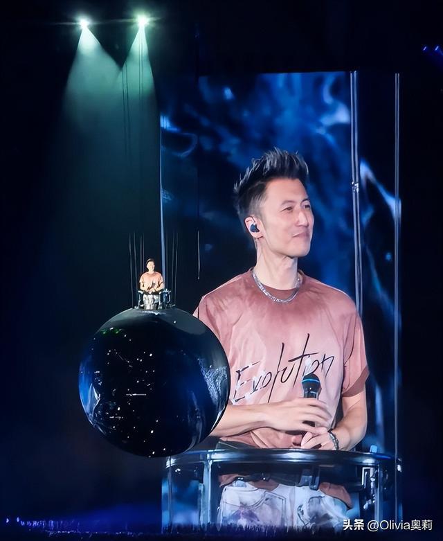 舞台上,45岁的他吊着钢丝在20米高的空中淋雨又唱又跳,雨水顺着头发流进麦克风,但他的歌声却一个音都不跑调。