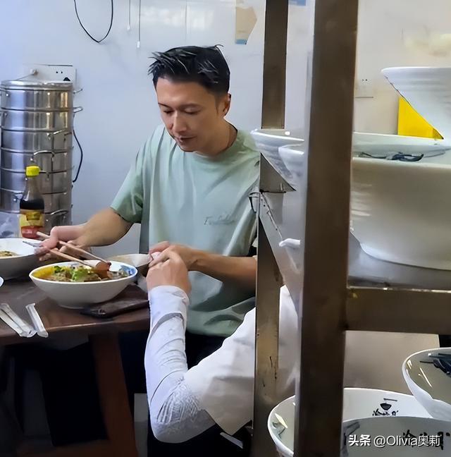 舞台上,谢霆锋冒雨倾情演唱,嗓子几乎喊哑。然而,没过几个小时,他便出现在路边小摊的塑料凳上,大口吃着面条,毫无明星架子。