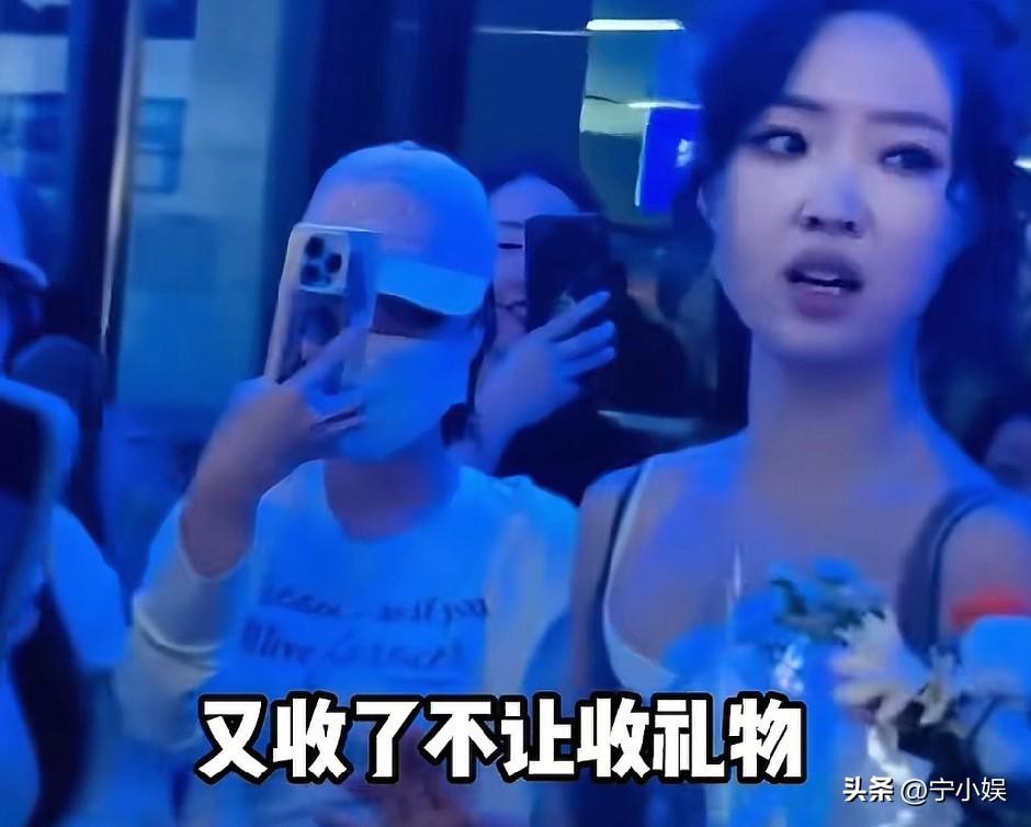 这还没完,等到再在机场遇到粉丝送礼,管乐满脸委屈表示:不让收礼物了。