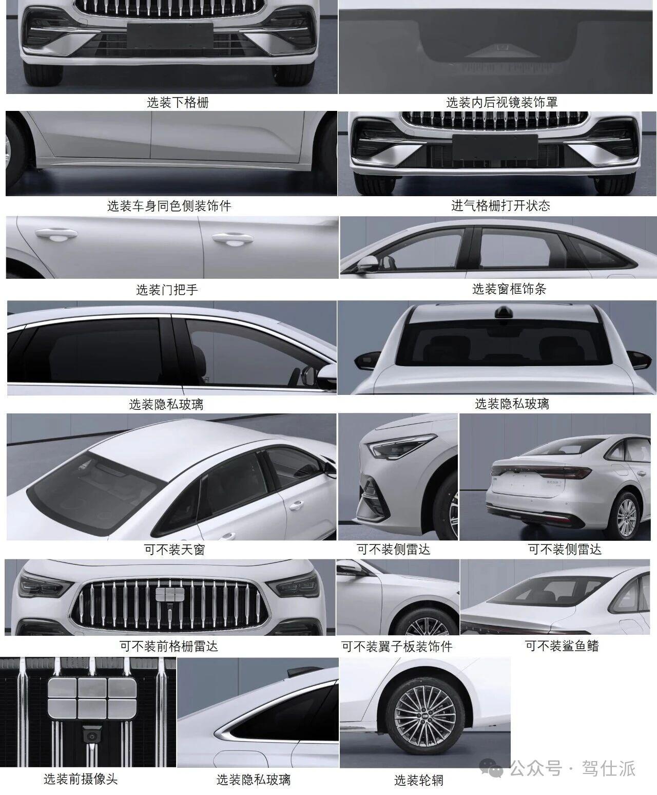 在细节设计上,星耀7几乎重做了引擎盖和前后保的设计,仅将侧围保持了与银河A7的一致。然而,从成本角度来看,星耀7显然并非一个高成本的产品。例如,车顶没有采用激光焊接技术,也没有配备全景天幕,甚至还提供了无天窗的配置选项。新车的轮毂尺寸也有17、18、19英寸三种可选。